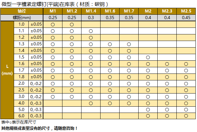 表格以外的长度及其他材质(黄铜、铝、磷青铜、镍银等)为订制